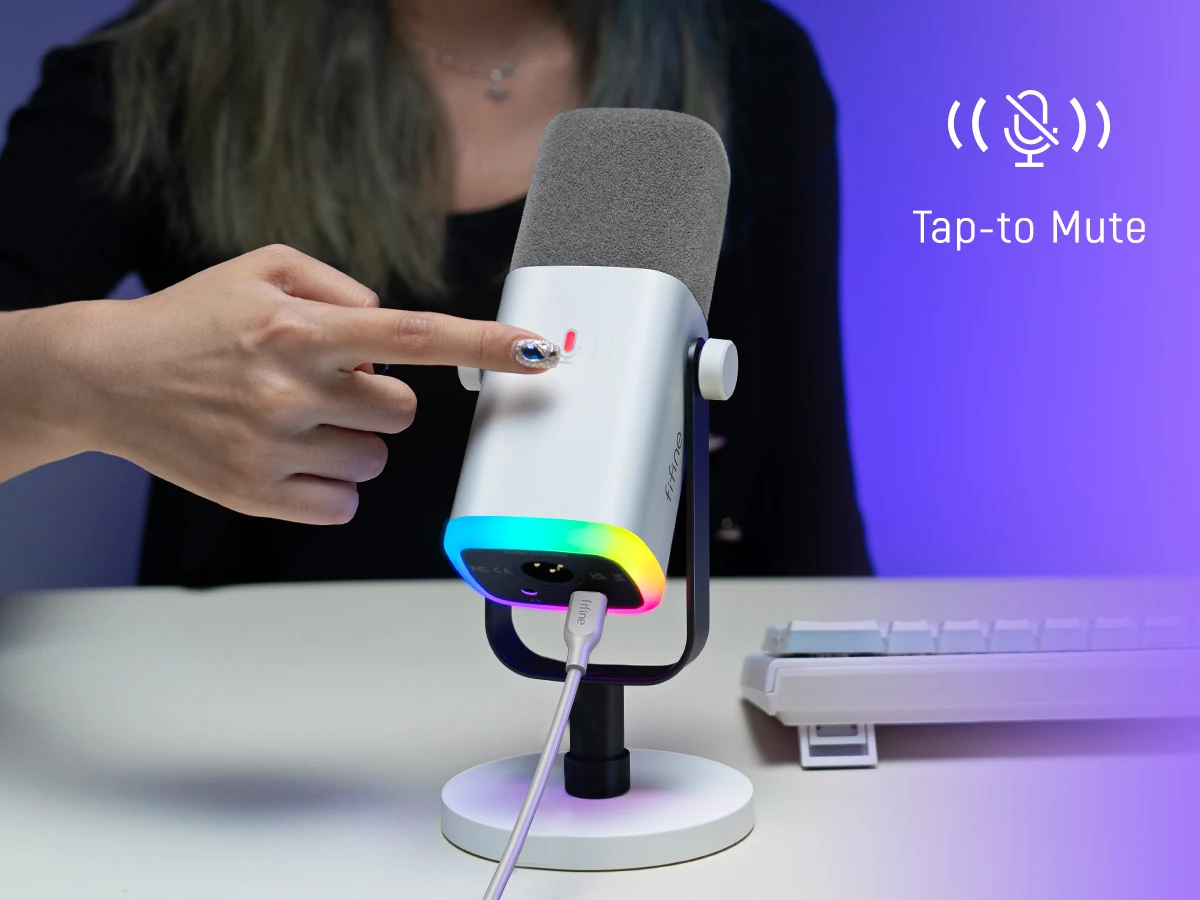 Equipped with convenient function keys that allow you to effortlessly control the microphone and monitor volume. With just a touch, you can easily mute the microphone and adjust the RGB lighting to reduce noise interference while maximizing your recording experience.
