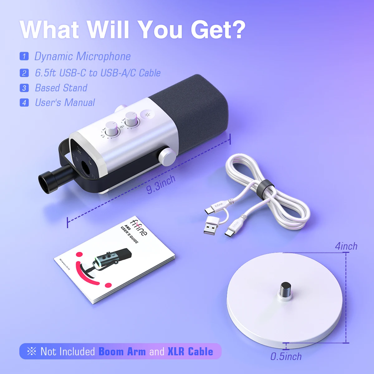 Package contains: AM8W Microphone*1,USB-C cable*1,Microphone Stand*1,Manual*1