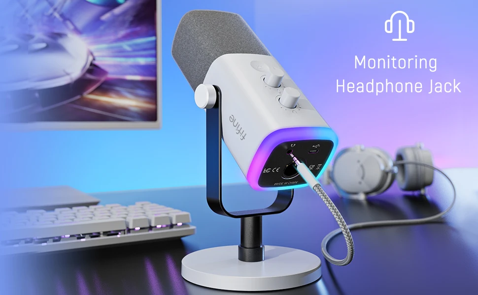 Tap into the 3.5mm monitor headphone jack, ensuring no delays in your audio playback. Enjoy the advantage of instantaneous audio feedback while recording or streaming - with FIFINE AM8W, you'll hear every nuance of your performance as it happens.