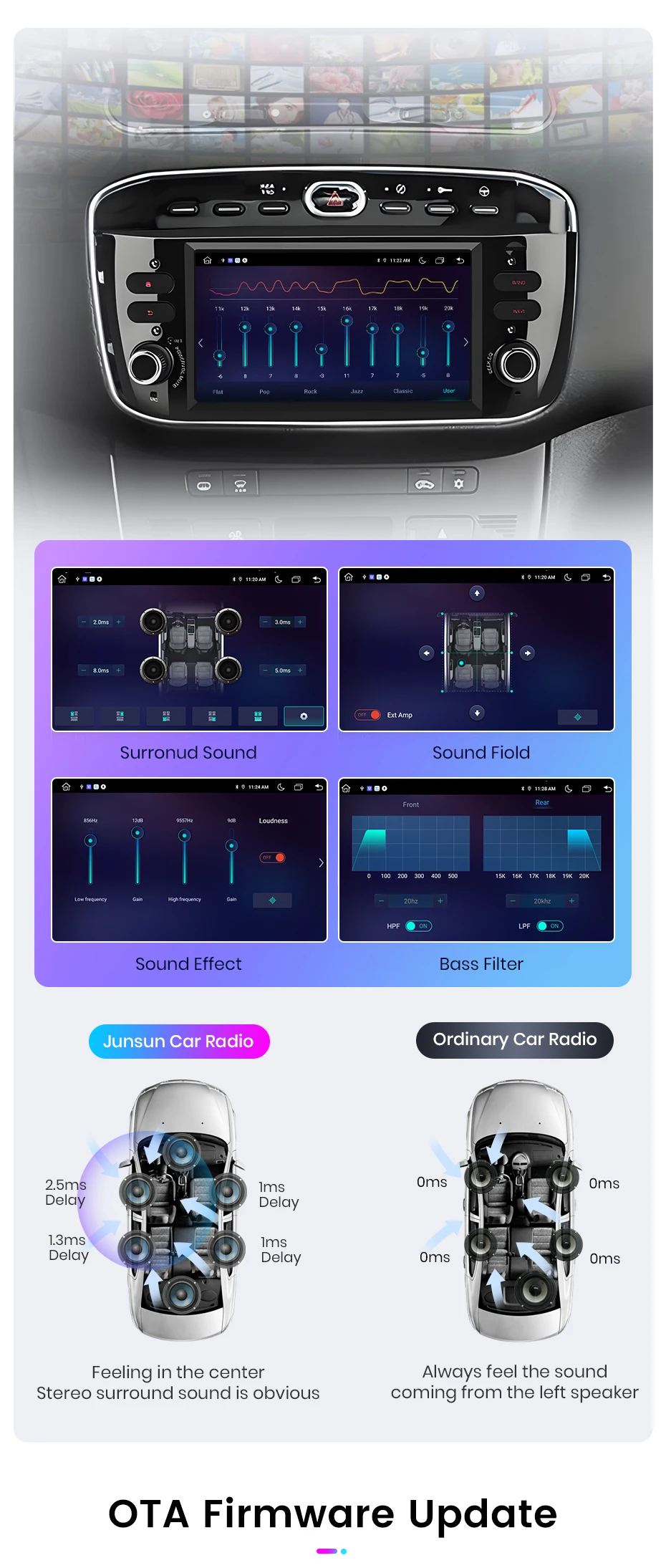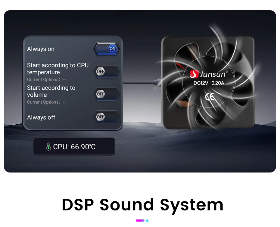 Using Octa-core processor, compared withothers, performan-ceincreased 45%, youcan enjoy a smooth experience. The radio is equipped with a more powerful and larger cooling fan to avoid reboot or abnormal touch or abnormal