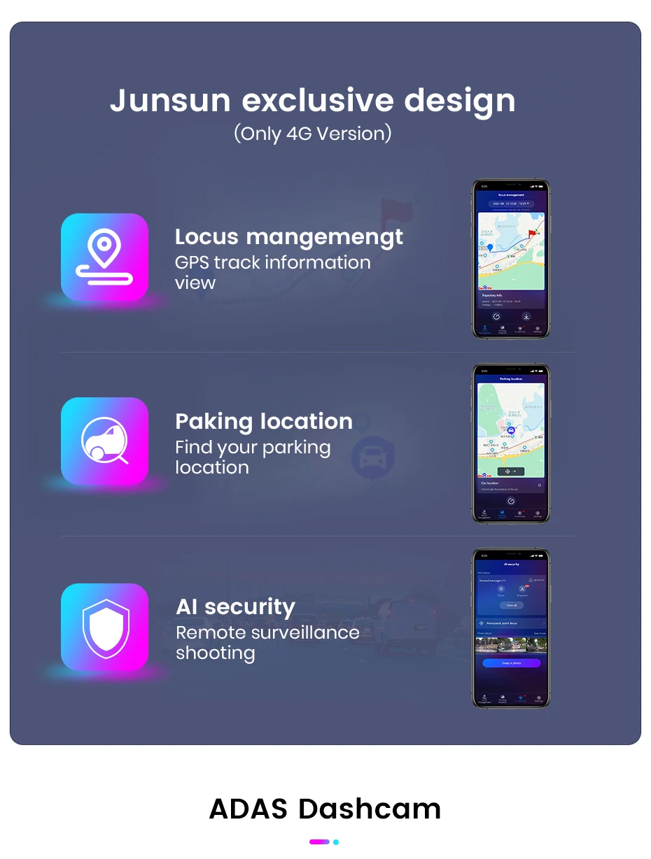 Now you can use the “Junsun Online"driving tracks, parking locations, and remote surveillance shooting (need buy  dvr).