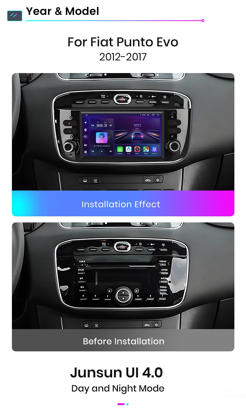 Junsun 7 Inch Car Radio for Fiat Linea Punto Evo 2012-2015 Wireless CarPlay Android Auto Intelligent Multimedia 4G